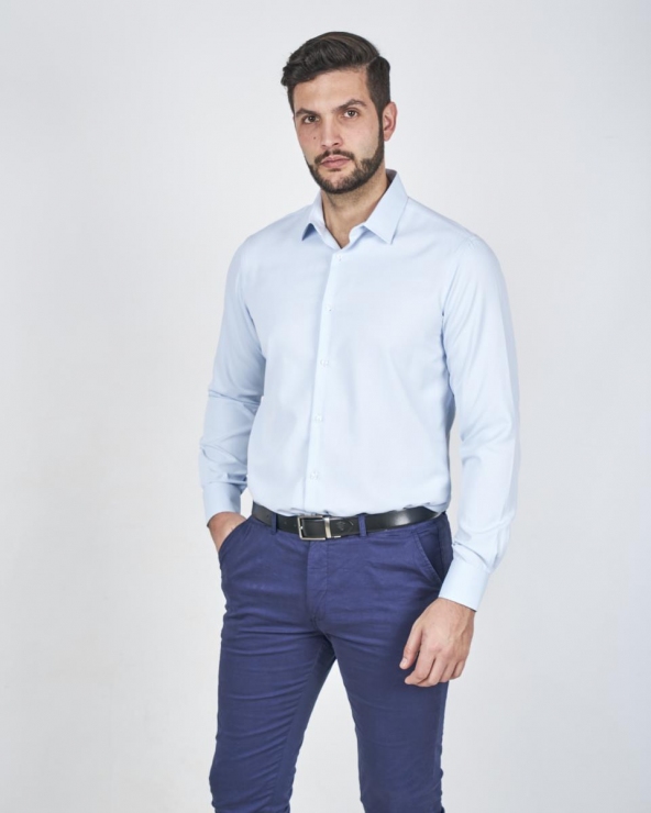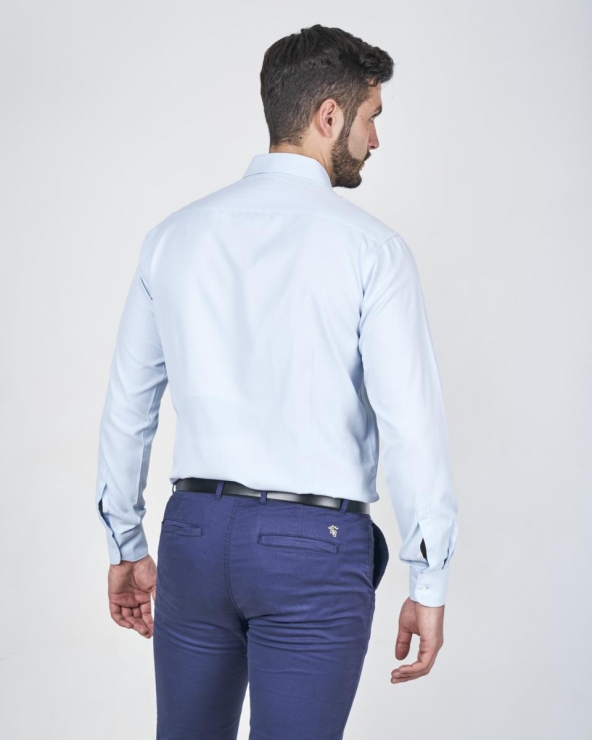 Esta camisa de hombre es una opción elegante y moderna que añade un toque de color sofisticado a tu vestuario de negocios. Confeccionada en tejido de Popelín Dobby. presenta una sutil micro-textura que le otorga un acabado más rico y visualmente interesante que el popelín liso tradicional. sin perder su ligereza.