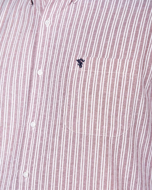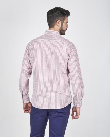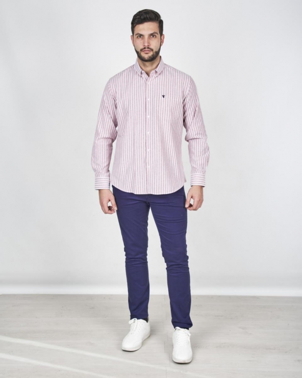 Esta camisa de hombre es una prenda versátil y cómoda. perfecta para looks casuales. de fin de semana o de oficina informal. Confeccionada en el clásico tejido Oxford. conocido por su textura distintiva y su durabilidad. presenta un patrón de rayas que estilizan y alargan visualmente la figura. y además. aportan facilidad de combinación.