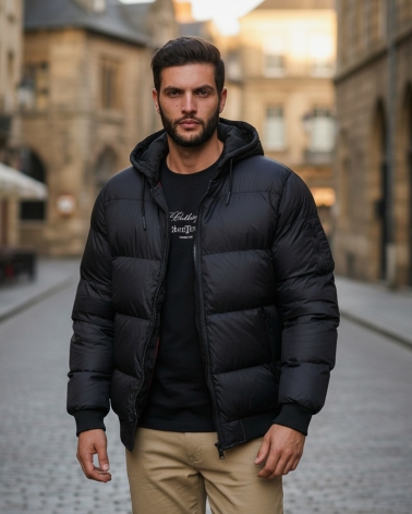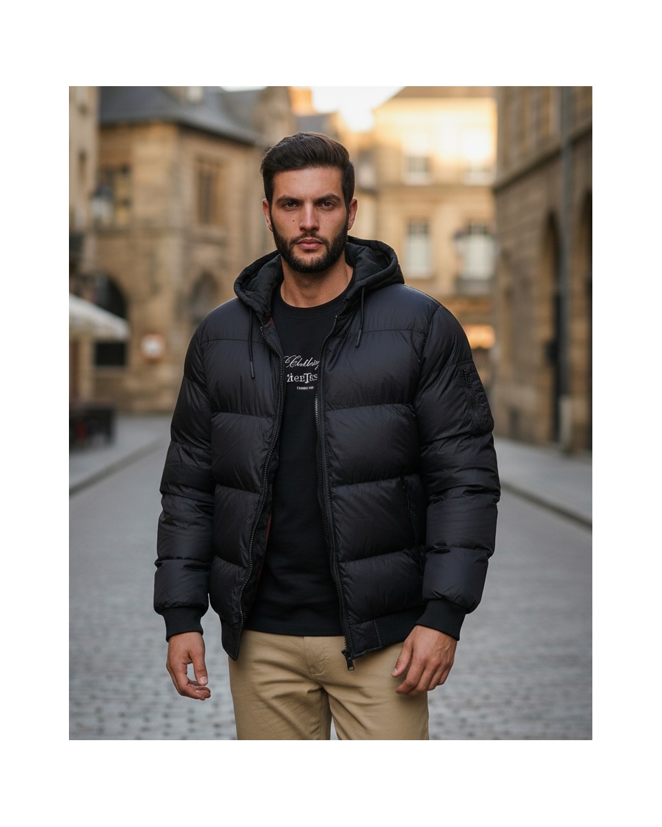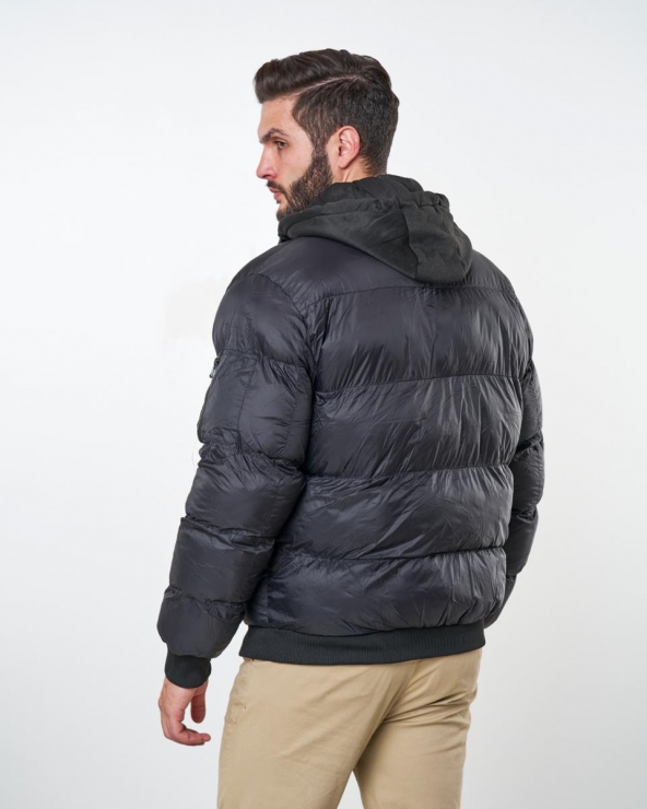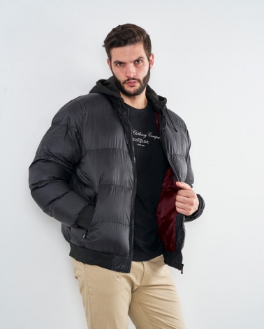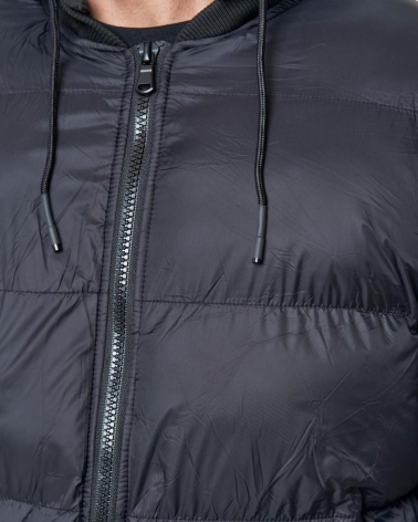 Cazadora de hombre acolchado confeccionada en tejido técnico ligero. Cuenta con cierre central de cremallera, dos bolsillos laterales y capucha de punto COMPOSICIÓN: POLIESTER, 100% POLIESTER
