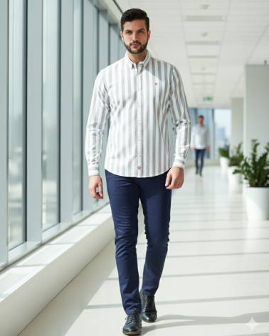 • Patrón de Rayas Anchas y Gráficas: Las rayas verticales gruesas son un elemento de diseño destacado. perfectas para hacer de la camisa la pieza central de tu look.