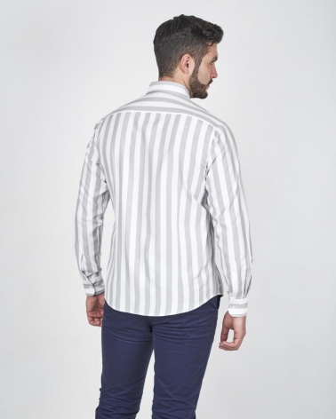 Esta camisa de hombre es un audaz giro en un clásico. perfecta para un estilo smart-casual con carácter. Confeccionada en el tradicional y duradero tejido Oxford. presenta un llamativo patrón de rayas anchas y fondo blanco que alarga visualmente la figura y aporta un toque fresco y moderno.