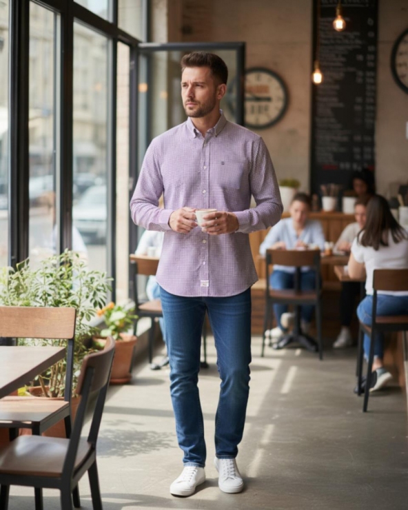Camisa cuello botón viyela... Camisa de Viyela Lisa - Corte Regular Lista de deseos Carro 34,95 €