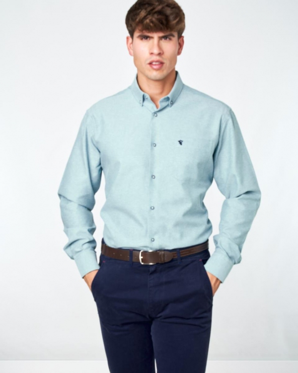 Camisa fil a fil liso celeste Camisa de Fil-a-Fil Lisa - Corte Regular Lista de deseos Carro 29,95 €