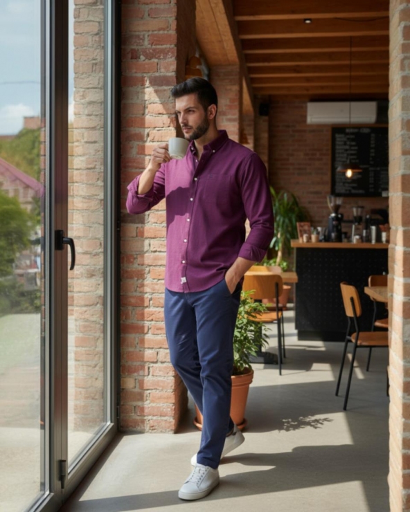 Camisa cuello botón viyela... Camisa de Viyela Lisa - Corte Regular Lista de deseos Carro 34,95 €
