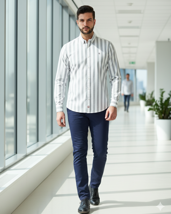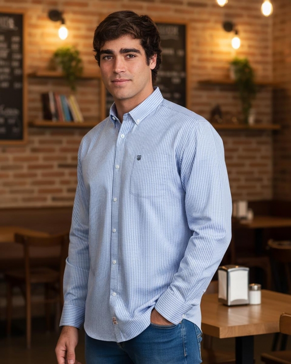 Camisa slim microoxford rayas Camisa de Oxford a Rayas Anchas - Corte Semi-Slim Lista de deseos Carro 34,95 €