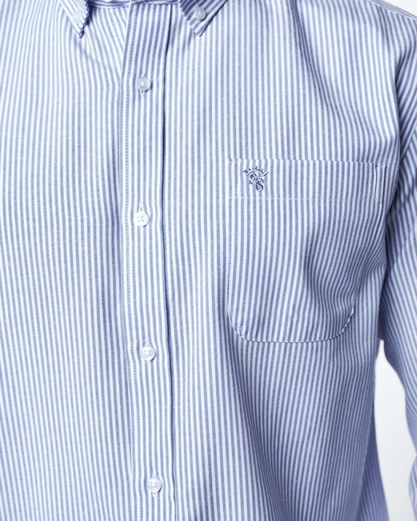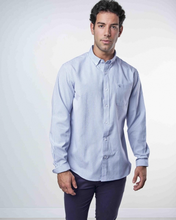 Descubre la esencia del estilo atemporal con nuestra camisa Oxford de rayas finas, confeccionada en resistente oxford para ofrecerte la combinación perfecta entre durabilidad y comodidad. Con un diseño clásico y refinado, esta prenda se convierte en un imprescindible para cualquier ocasión, desde la oficina hasta looks casuales con un toque sofisticado.