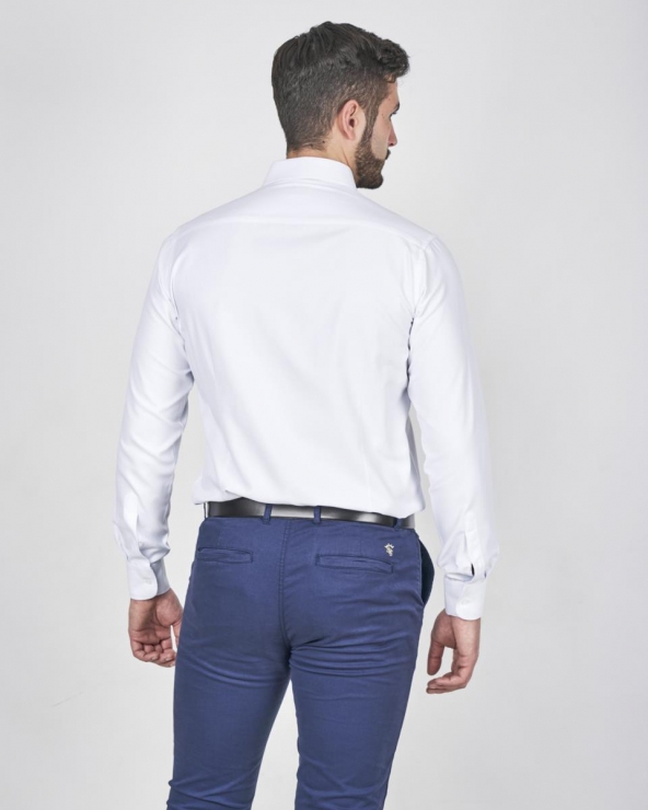 Esta camisa de hombre es una opción elegante y moderna que añade un toque de color sofisticado a tu vestuario de negocios. Confeccionada en tejido de Popelín Dobby. presenta una sutil micro-textura que le otorga un acabado más rico y visualmente interesante que el popelín liso tradicional. sin perder su ligereza.