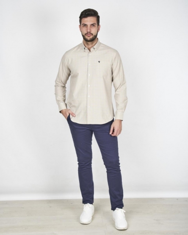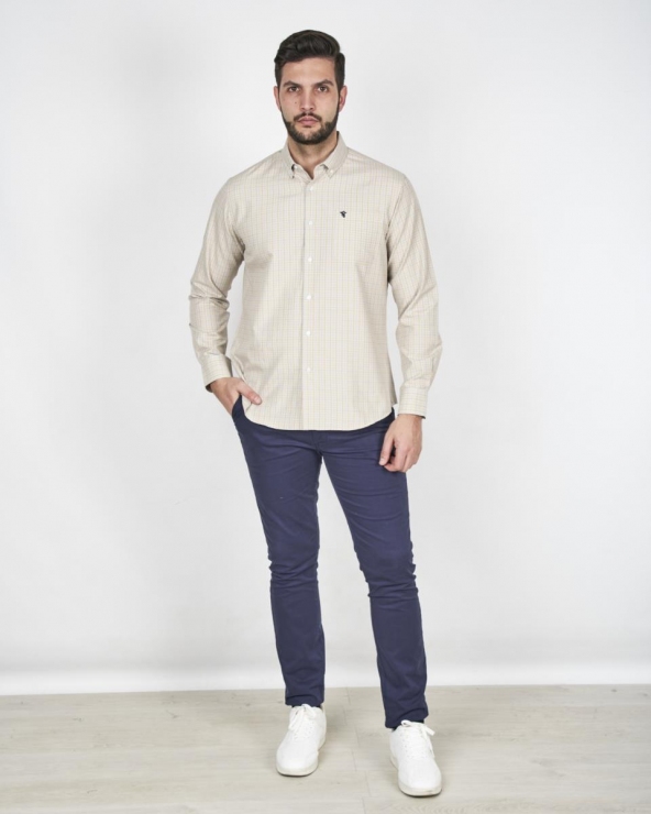 Esta camisa de hombre es una prenda versátil y cómoda. perfecta para looks casuales. de fin de semana o de oficina informal. Confeccionada en el clásico tejido Oxford. conocido por su textura distintiva y su durabilidad. presenta un patrón de cuadros que aportan calidez y facilidad de combinación.