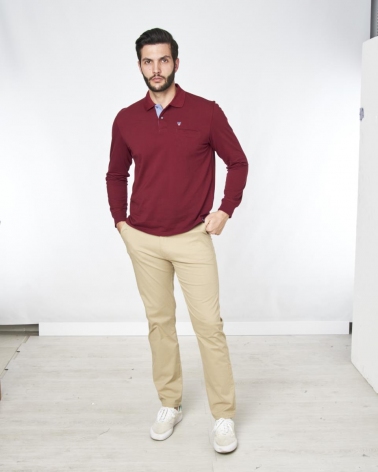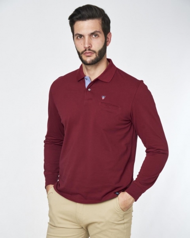 Polo Liso Básico Manga Larga Rojo