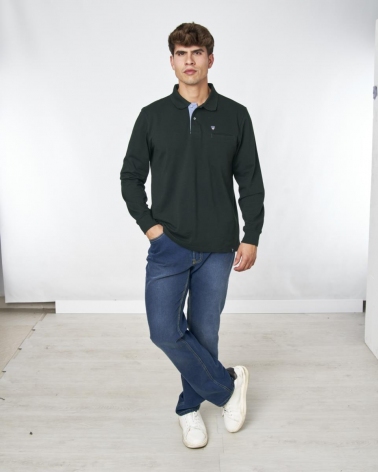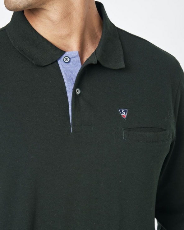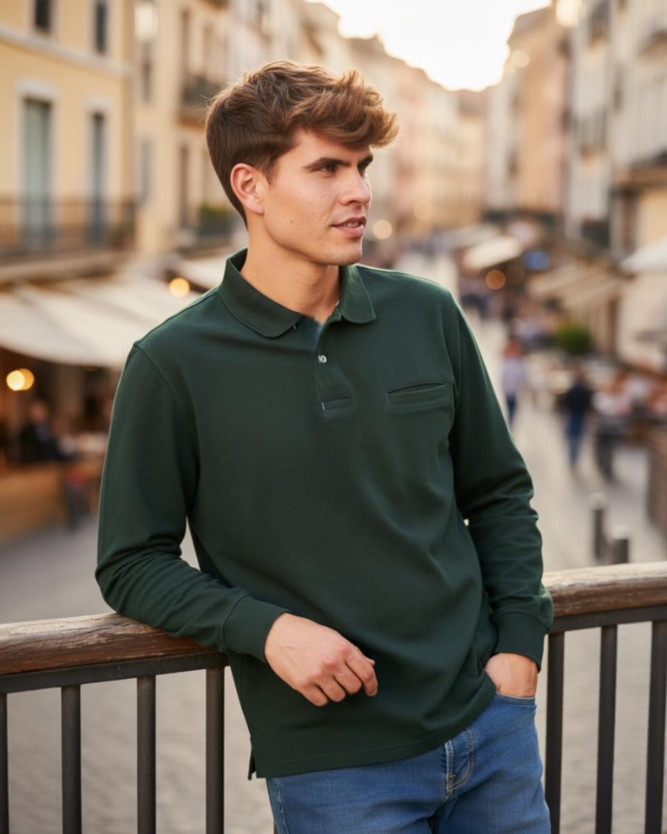 Polo Liso Básico Manga Larga Verde