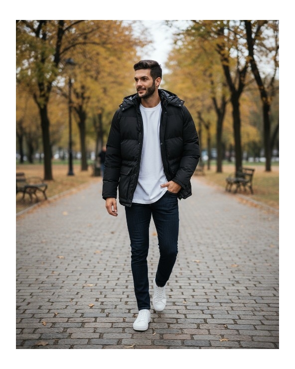 Parka dos bolsillos negro Parka de dos bolsillos con capucha desmontable Lista de deseos Carro 69,95 € 49,95 €