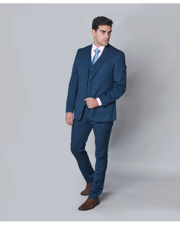 Traje tres piezas slim azul Traje de tres piezas clásico, patrón slim-fit de corte recto en Drop 6. Lista de deseos Carro 119,95 €