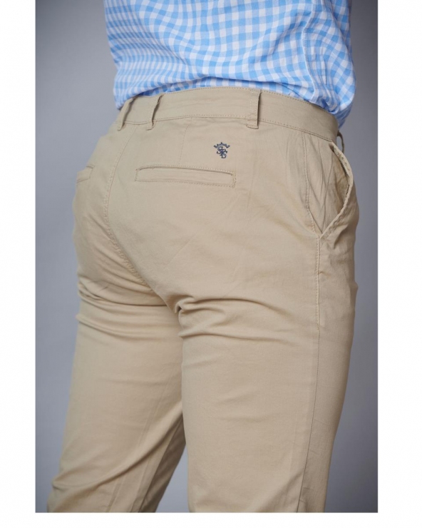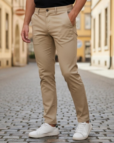 Estos pantalones tipo chino de algodón con elastán son perfectos para cualquier ocasión. Están diseñados con un patrón entallado para que se ajusten perfectamente a tu figura. Son muy cómodos y versátiles. así que puedes usarlos para una salida informal o para una ocasión más formal. COMPOSICIÓN: