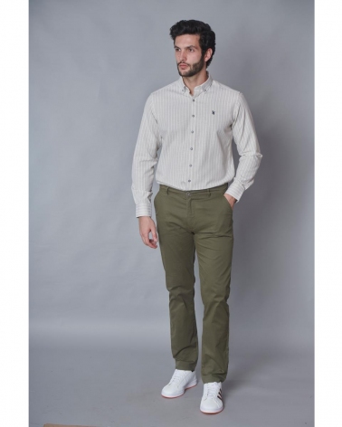 Estos pantalones tipo chino de algodón con elastán son perfectos para cualquier ocasión. Están diseñados con un patrón regular para un ajuste cómodo y versátil. Están hechos de una mezcla de algodón y elastán para una mayor comodidad y durabilidad. COMPOSICIÓN: