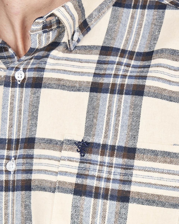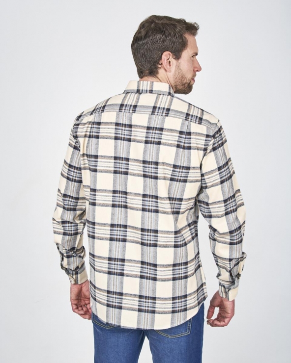 Esta camisa de hombre es la esencia del estilo casual y la comodidad invernal. Confeccionada en suave Franela de 100% Algodón. ofrece un tacto increíblemente cálido y afelpado. perfecto para combatir el frío sin renunciar al estilo. El patrón de cuadros grandes en tonos neutros la convierte en una prenda versátil y fácil de combinar.